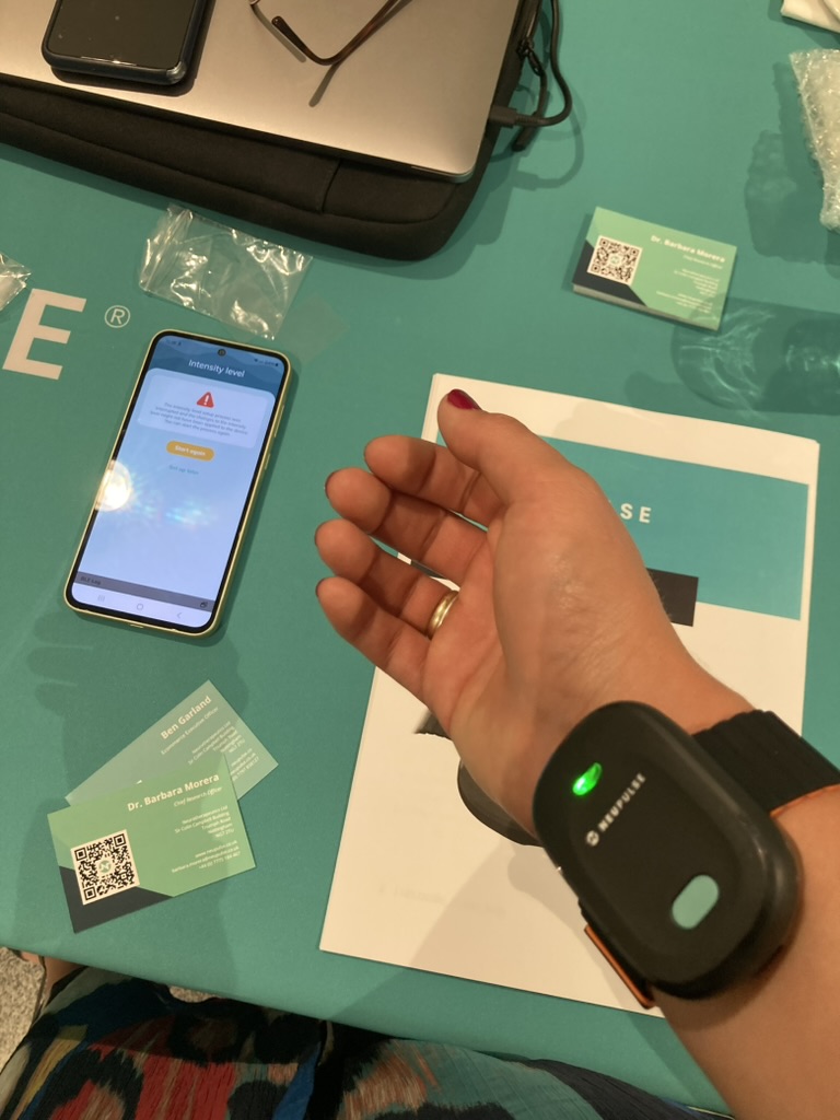 Auch der Austausch mit Betroffenen und deren Vertretungen schafft Verständnis und neue Perspektiven. Beispielsweise konnten wir die in 2026 erscheinenden Impulsarmbänder der Firma Neupulse testen.